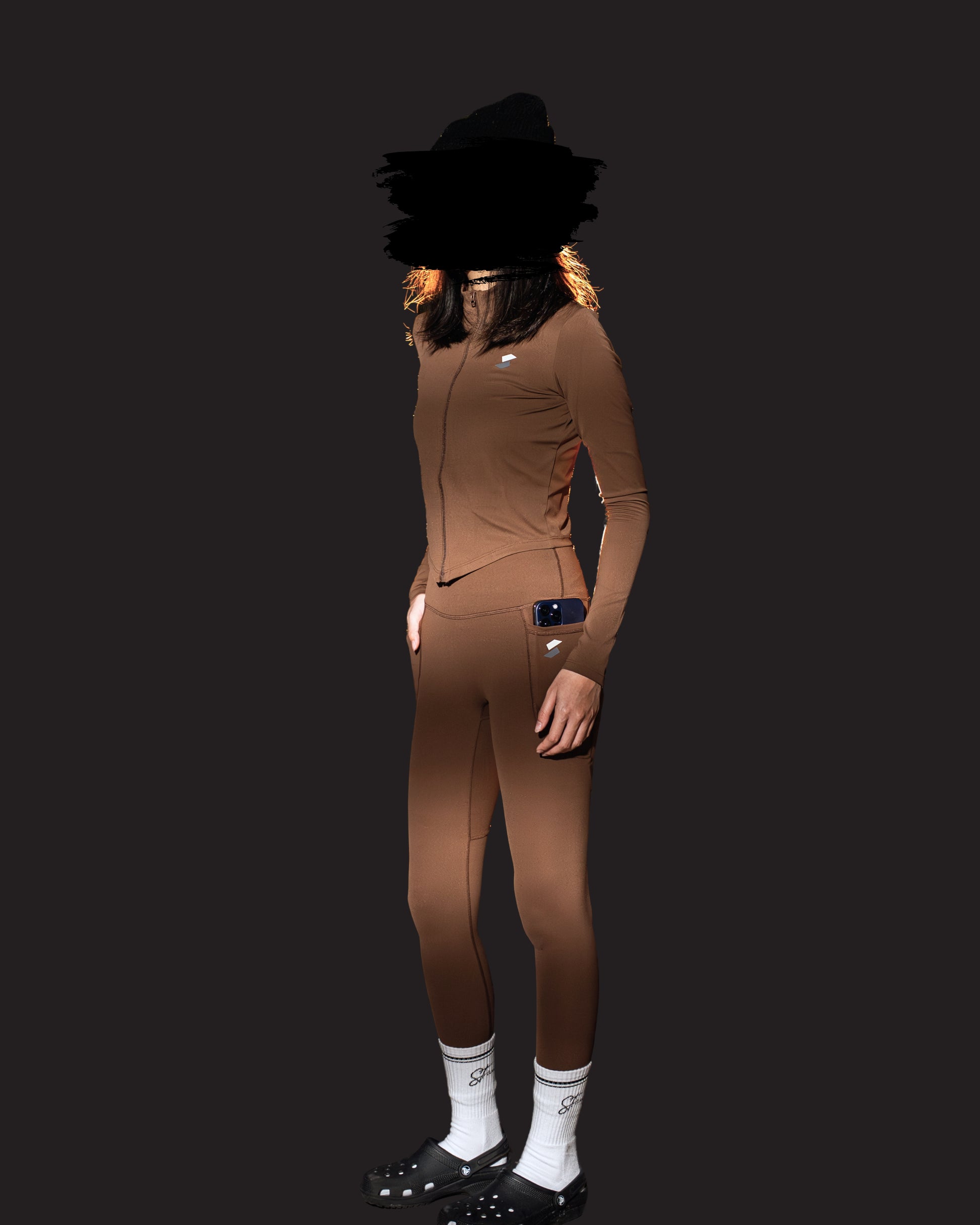 The Strive Velocity Set is designed for athletes who demand both speed and style, featuring a lightweight performance jacket and high-rise leggings with functional side pockets. Made from a breathable cotton-spandex blend, this set offers four-way stretch, moisture control, and a sculpted fit that adapts to every move. The jacket provides a sleek layer for warm-ups, cooldowns, or casual wear, while the leggings deliver all-day comfort with the convenience of secure pocket storage.